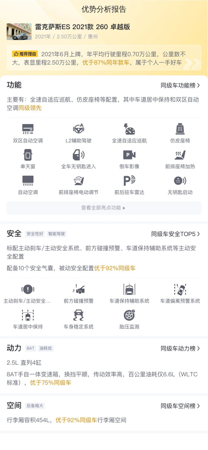 综上所述的新车含税价、用车成本、市场行情、优势分析、同款比价等数据仅供参考。在配置部分,因为二手车非标品,车辆可能会存在配置改装的情况,具体车况信息需要线下结合车辆实际情况进行综合参考。